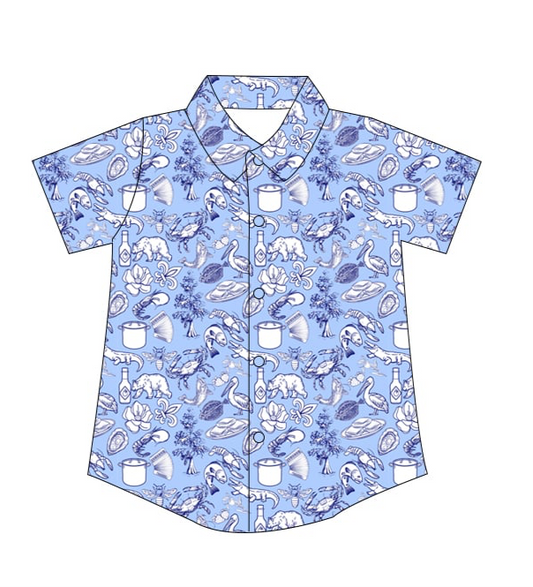 Mardi Gras Crawfish Button Down Shirt Kid's