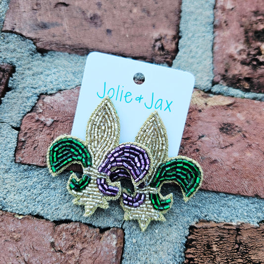 Black and Gold Fleur De Lis Seed Bead Earrings