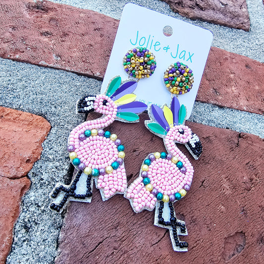 Mardi Gras Flamingo Beaded Earrings