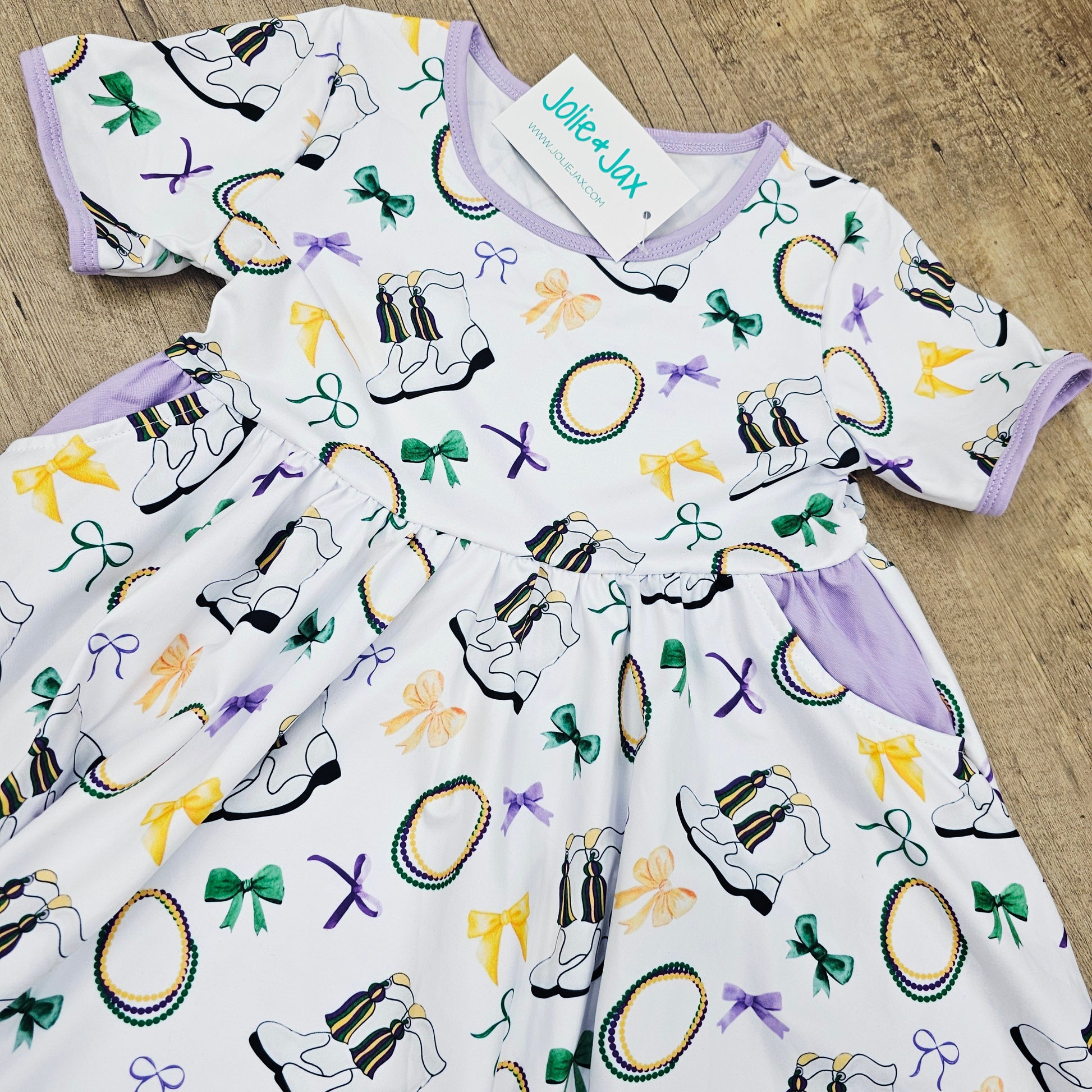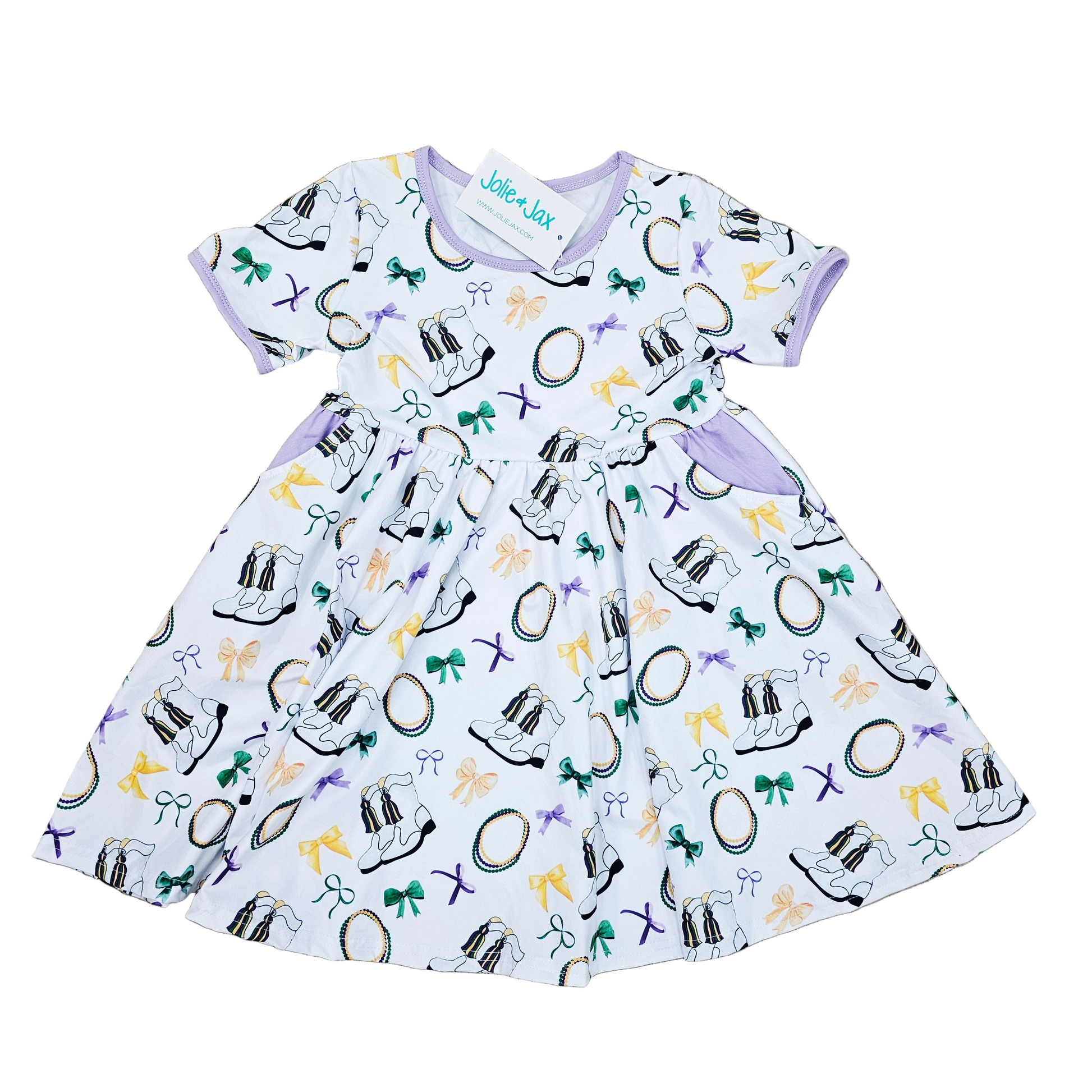 Spin into style with the Boots and Bows Twirl Dress! This playful piece features a charming bow detail and a flowy silhouette designed for movement and fun. Perfect for twirling at parties, playdates, or everyday adventures, it combines whimsical flair with comfortable wear. The classic boots-and-bows aesthetic brings a touch of cowgirl charm mixed with girly elegance. Whether she's dancing around the house or heading out for a special occasion, this dress delivers personality and joy in every twirl.