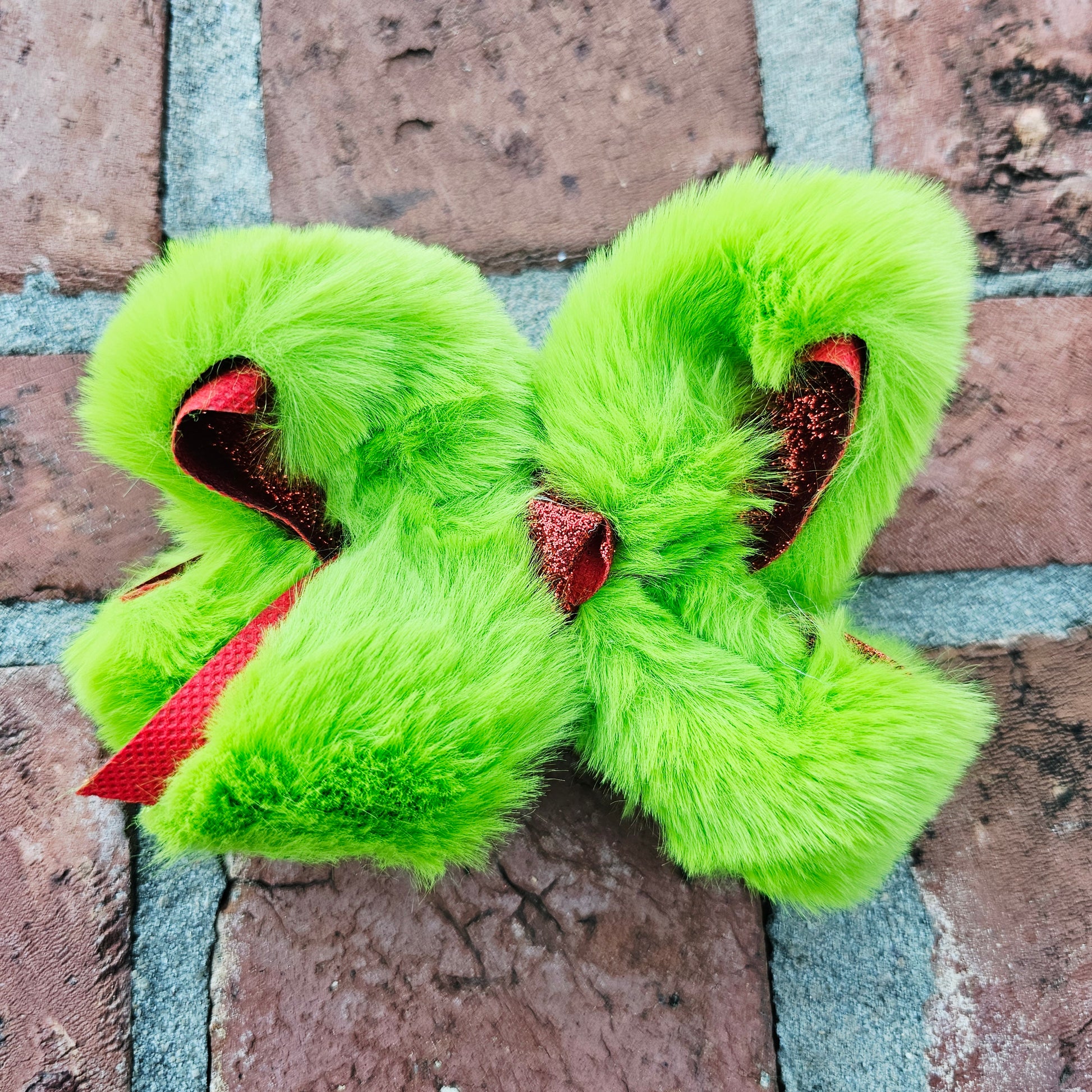 Add a pop of fuzzy fun to any hairstyle with these vibrant green fur hair bows!