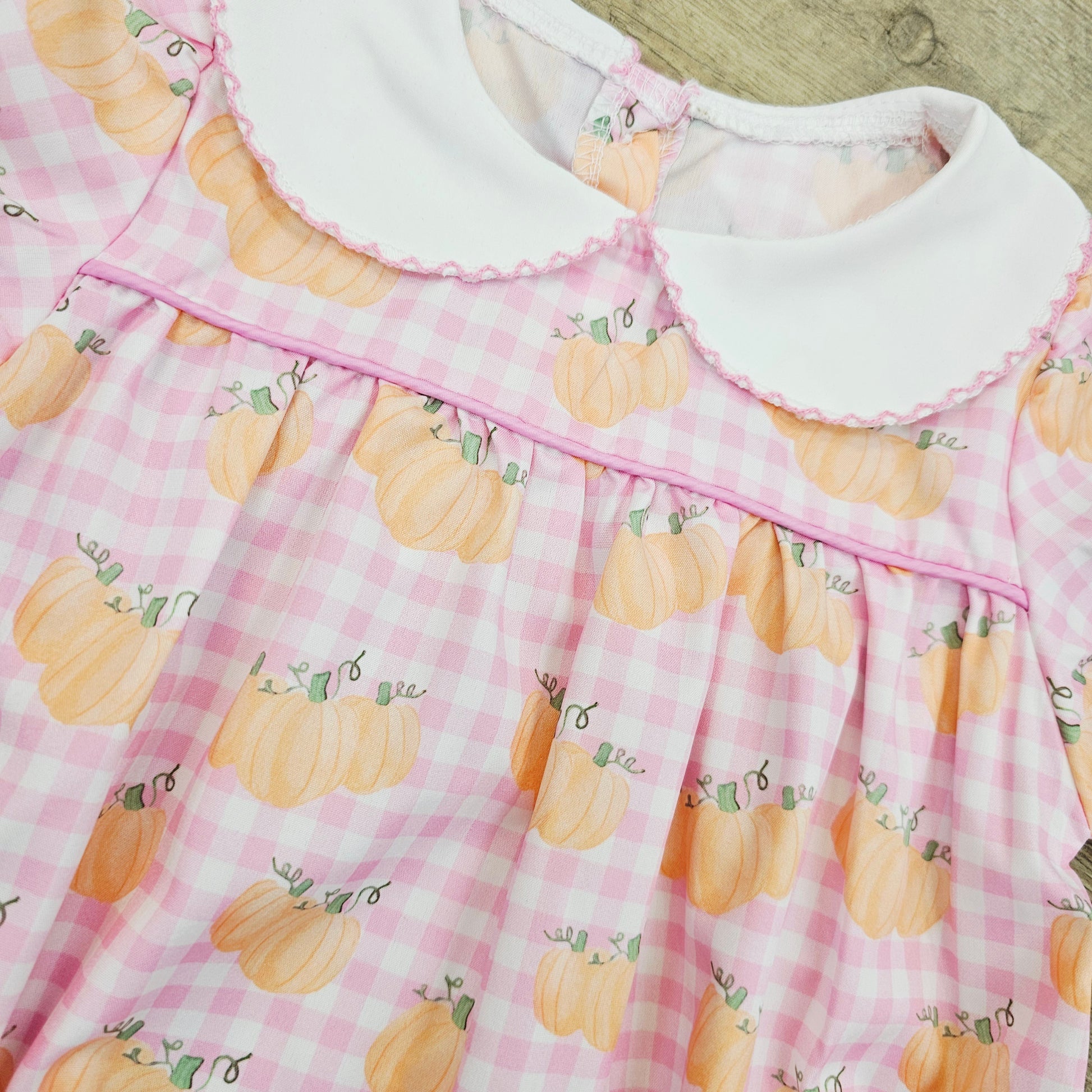 Add a splash of charm to your little one’s wardrobe with the Pumpkin Pink Plaid Bubble. This playful outfit features a cozy bubble silhouette adorned with a classic Peter Pan collar, making it perfect for twirling and exploring.